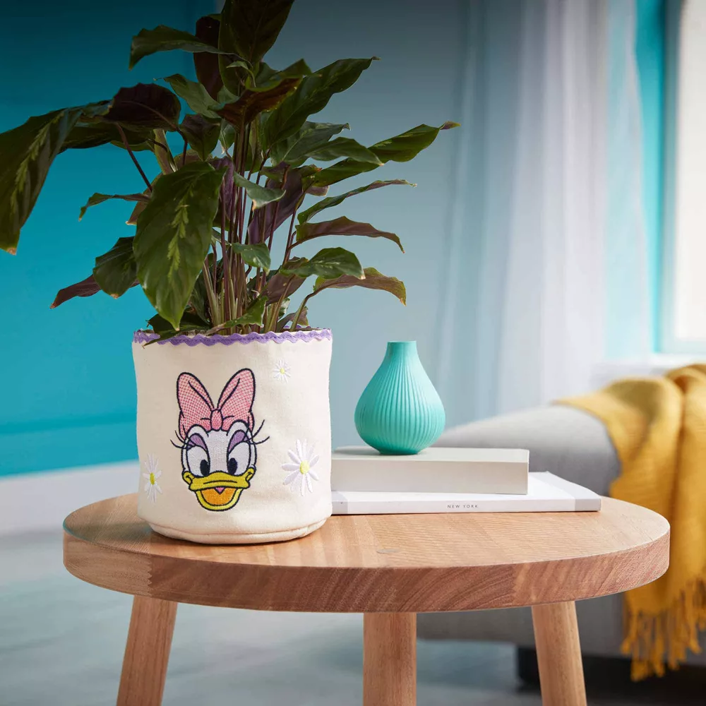 Ăgayez votre intĂ©rieur avec ce joli cache-pot Ă l’effigie de Daisy. DĂ©corĂ© de broderie et d’une inscription inspirante, il accompagnera en douceur votre plante verte.