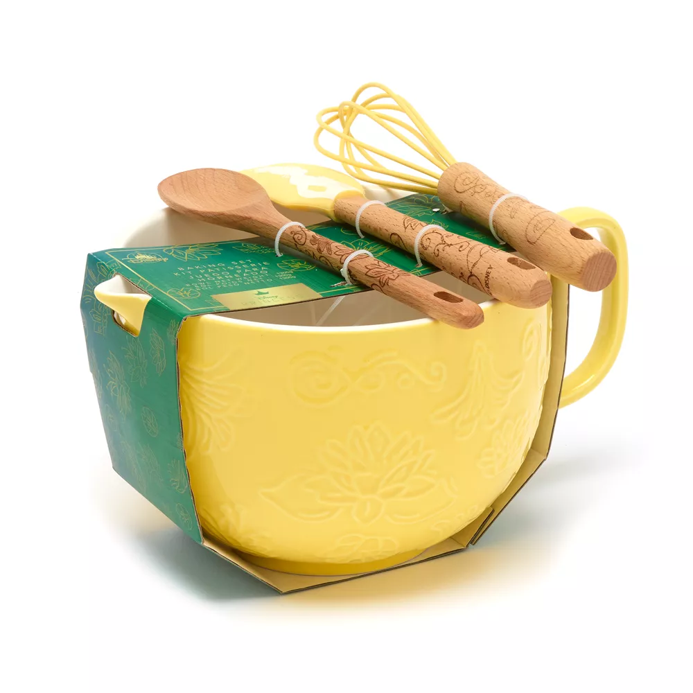 Ajoutez de la magie à vos créations culinaires avec ce coffret de pâtisserie inspiré de La Princesse et la Grenouille. Il contient une carafe avec un motif floral intégral et trois ustensiles pratiques.