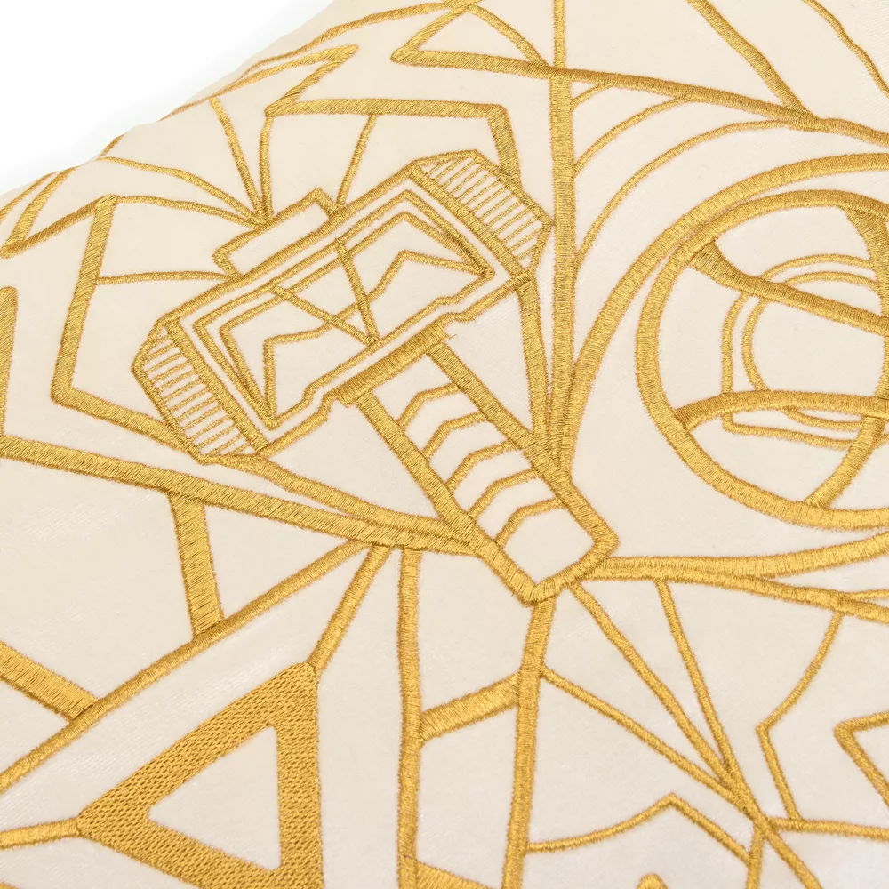 En plus d’ĂȘtre particuliĂšrement Ă©pique, ce coussin Avengers, avec ces borderies dorĂ©es et ses logos Avengers stylisĂ©s, sera un alliĂ© de choix lors des batailles de polochons.